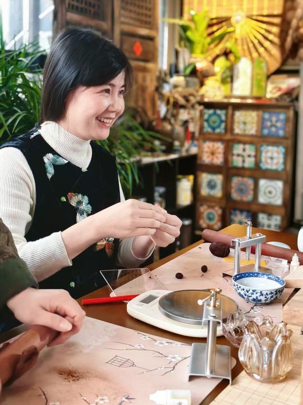 一时间,活动现场热闹起来。朋友们放下手中的香泥,围过来品尝。艾草的清香与合香珠的幽香交织在一起,在空气中弥漫成一种难以言喻的暖意。